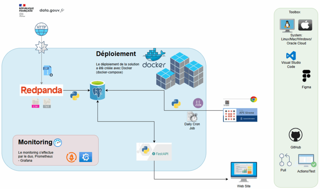 - Pipeline automatisé de mise à jour quotidienne via API SIRENE.
